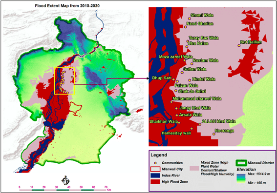 Map of the cumulative extent of flooding in the study area for the period 2010-2020.