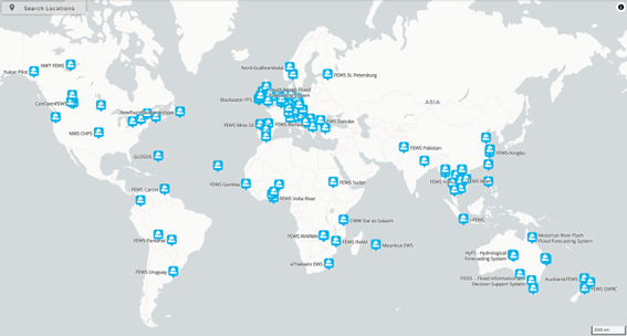Figure 2. Locations that have implemented a “Flood Forecasting” system. Source: https://fewsmap.deltares.nl/topology/node/floods/map
